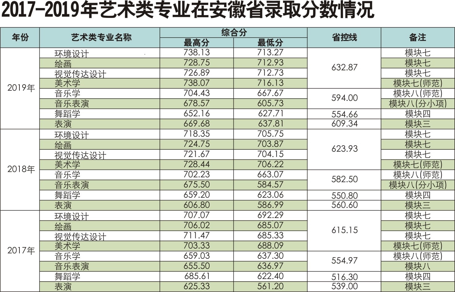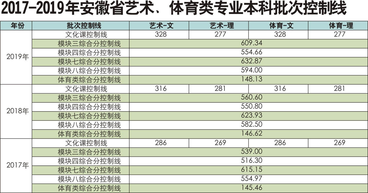 阜阳师范大学2020年招生简章(8):近三年艺体类专业分数线