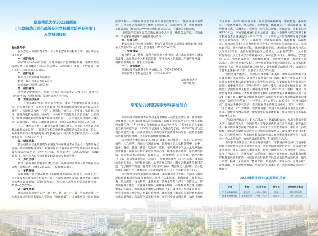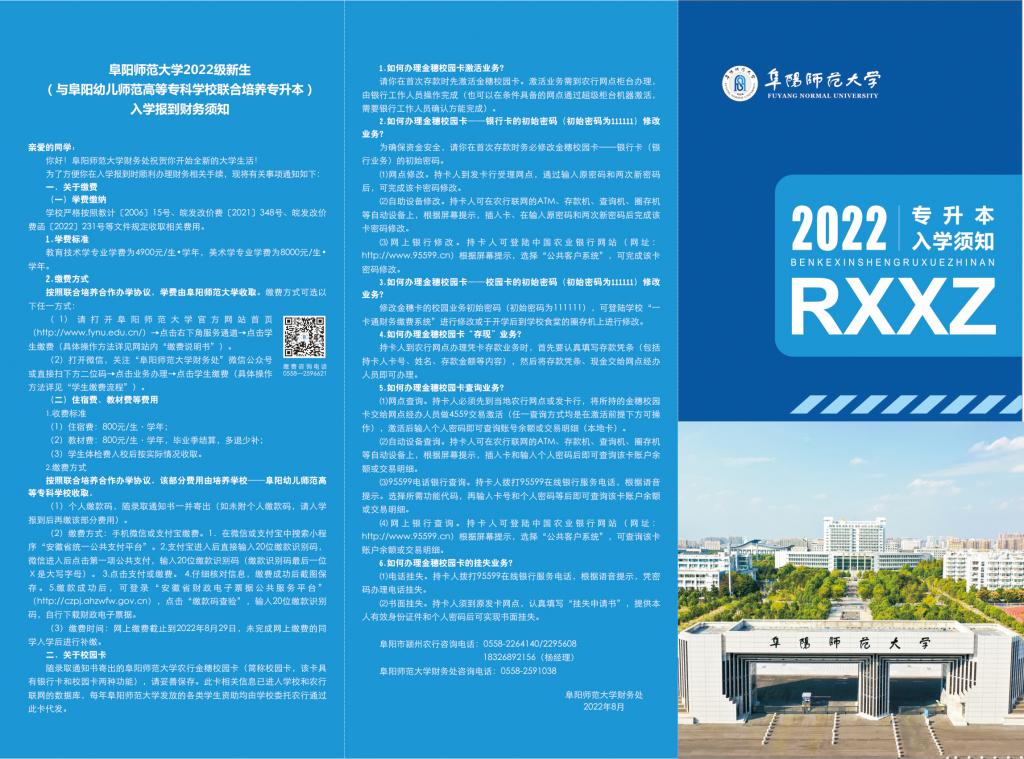 阜阳师范大学2022级专升本新生(与阜阳幼儿师范高等专科学校联合培养)入学报到须知