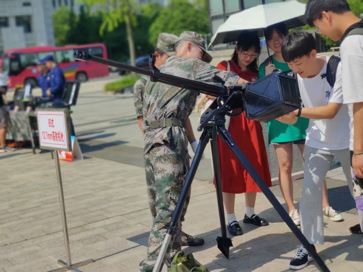 会后在我校书林广场进行了学生签名、观看征兵宣传录像、武器装备展示和征兵政策咨询等活动。