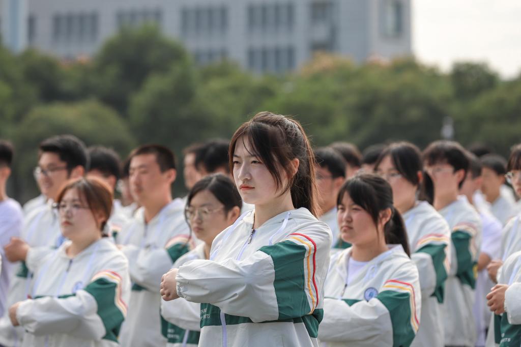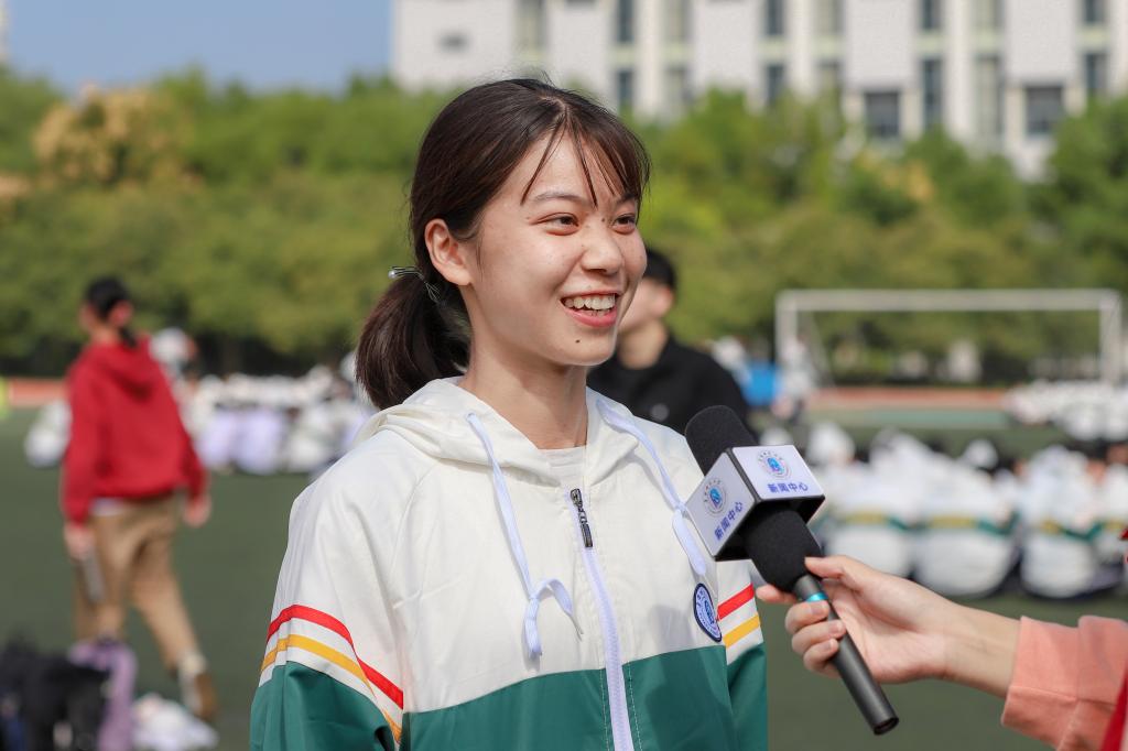 外国语学院2021级翻译1班邬静说:“经过几天的军训,我深刻的意识到我们是一个集体。身为一名长在国旗下的社会主义青年,我们应该发扬集体主义精神,担当起强国大任。”