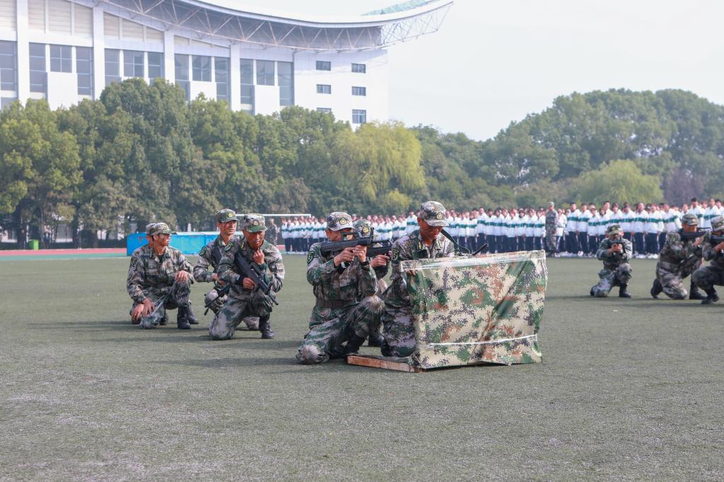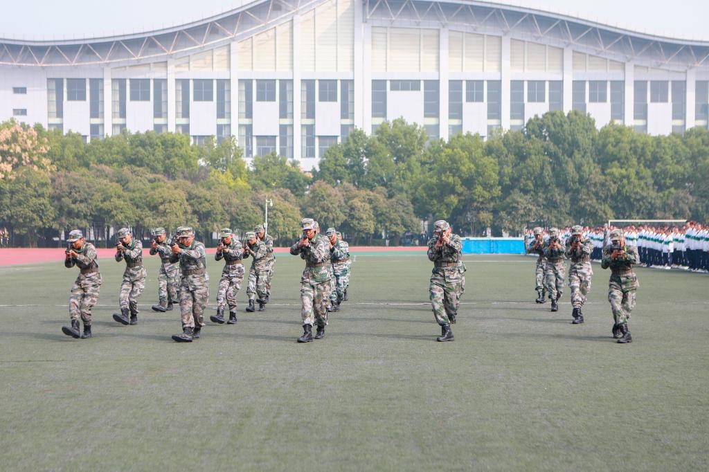 汇报方阵进行了队列示范,军体拳和战术基本动作,战斗班组攻防基本动作和战术原则等系列表演。准确到位的动作、干脆利落的出拳,充分展示了汗水铸就的训练成果,赢得场上阵阵掌声。