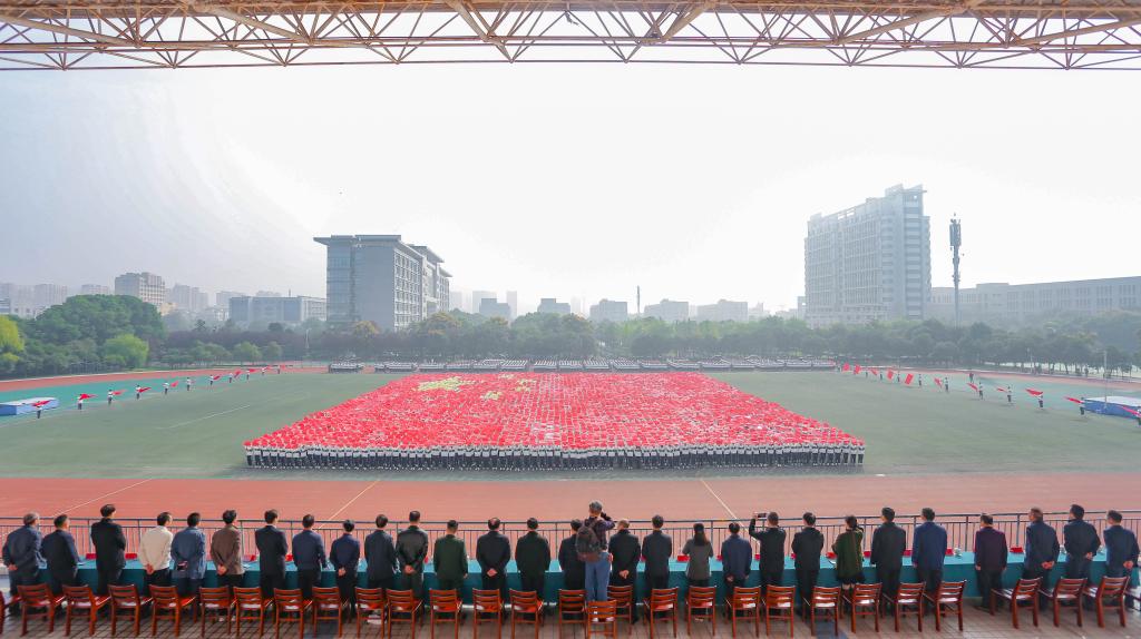10月22日上午,我校2021年新生军训成果汇报暨表彰大会在西湖校区田径场隆重举行。校领导程曦、涂红松、李文雍、张庆旭、汪芳启、季爱新,颍东区人武部副部长王国盛出席大会。大会由校党委副书记涂红松主持。