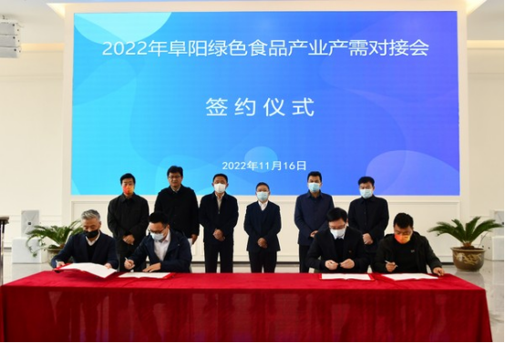 11月16日上午,由阜阳市人民政府主办,市经济和信息化局、市农业农村局、市商务局、临泉县人民政府承办的2022年阜阳市绿色食品产业产需对接会在拾分味道(临泉)食品有限公司举行。我校受邀参会做主题推介,并与安徽银铃食品有限公司现场签署了产学研合作协议。