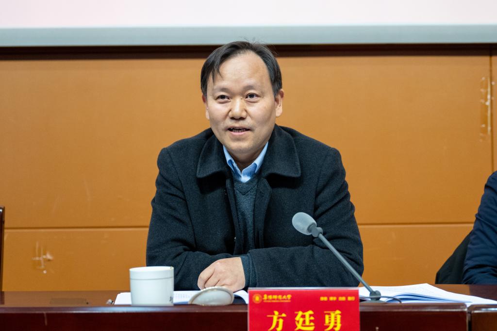 方廷勇就抓好工作落实,进行了强调部署。他指出,要提高站位,深化认识。职务科技成果赋权试点,是中央全面深化改革委员会做出的重要工作部署,是习近平总书记亲自研究推动的重要改革。“深化科研项目经费‘包干制’”改革是党和国家深入推动科技自立自强战略,推动高校科研创新和科研成果转化工作高质量发展的举措。深入推动改革试点工作落实落地,既是贯彻落实科技自立自强重要部署的具体行动,也是推进我校科研工作改革创新、加快推动成果转化、加快提升科研创新能力的必然要求。我们要切实把思想和行动统一到上级有关部署要求上来,切实增强做好改革试点工作的思想自觉、行动自觉;要紧抓机遇,深化改革。“职务科技成果赋权试点”,完成了知识产权、知识产权收益的探索尝试,“深化科研项目经费‘包干制’”赋予了科研单位和创新团队更大的经费使用自主权,能够有效减轻科研人员负担,充分调动科研人员积极性。我们要建立改革试点工作的领导机制,加强科研、财务、国资、人事、纪检、审计等部门的协同配合,进一步加强制度建设,加强领导,深入推动。充分借鉴中国科大等高水平大学的改革经验,抓紧完善配套制度,切实把职务科研成果赋权、科研经费包干制改革试点工作落实到位,为全校科研团队和科研人员提供更优的科研创新制度环境;要加强宣传,广泛动员,各二级学院和相关职能部门,抓紧宣传和解读有关文件精神,确保人人知晓,着力营造更加浓厚的科研工作氛围,激励广大科研人员担当作为,加快推动科研创新和科技成功转化工作高质量发展,为建设高水平师范大学作出更大贡献。