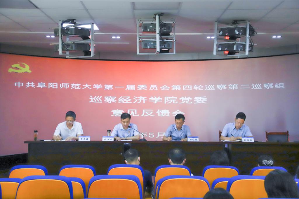 根据学校党委统一部署,2023年3月20日至4月10日,学校开展了中共阜阳师范大学第一届委员会第四轮巡察,对文学院党委、教育学院党委、经济学院党委、生物与食品工程学院党委开展了常规巡察。学校先后召开了巡察工作领导小组会议、党委常委会,审议并批准了巡察组巡察情况报告和巡察反馈意见。5月19日、23日,学校分别召开巡察意见反馈会,校党委常委、纪委书记、监察专员、巡察工作领导小组副组长季爱新分别出席相关单位会议,巡察组成员、党委巡察工作办公室负责人、被巡察单位领导班子成员及师生代表参加了反馈会。