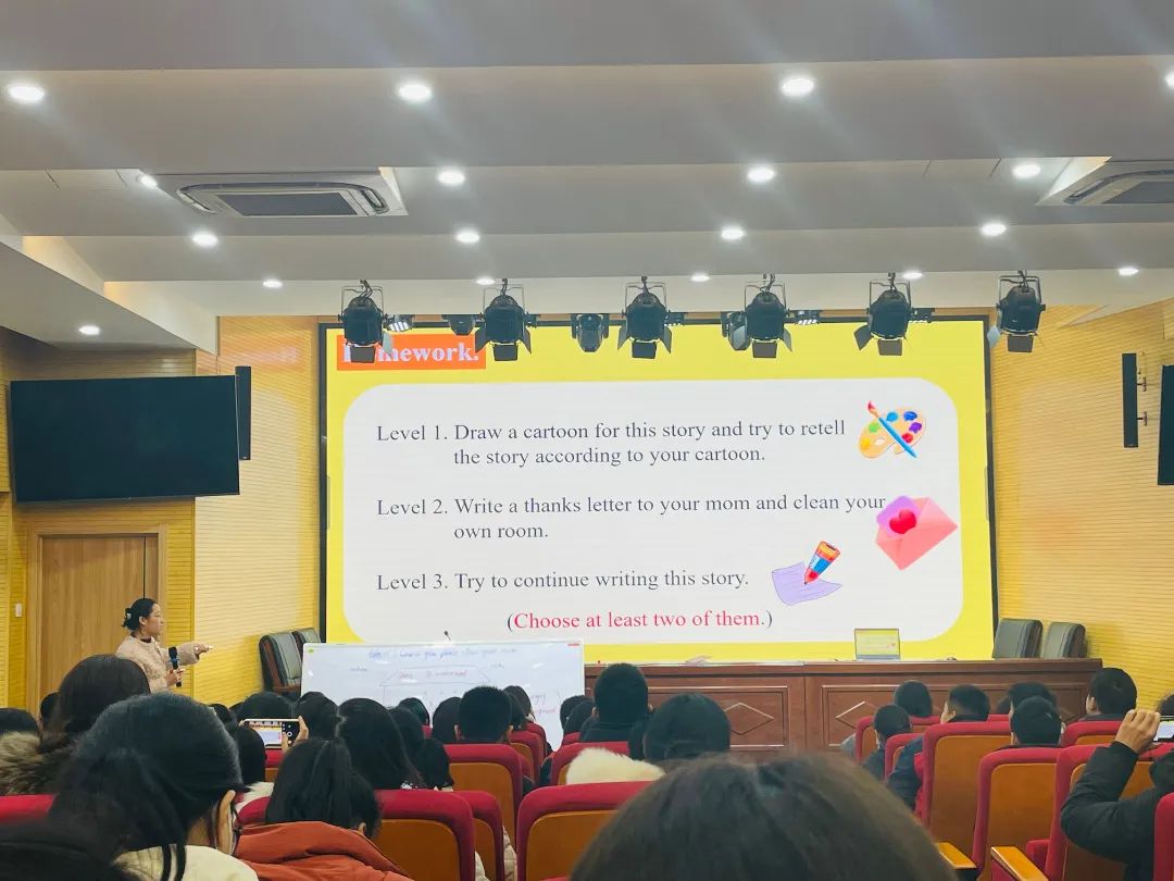 评议活动中,老师们踊跃发言,各抒己见,从素材选择、活动设计、教师素养及师生互动等方面综合讨论与分析。大家一致认为三位老师的课堂用心又有新意,在主题阅读中渗透词汇教学,注重阅读习惯的养成,受益颇多。