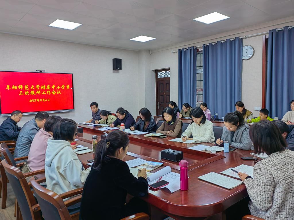 11月6日下午,阜阳师范大学附属中小学教研工作第三次会议在求真楼101会议室召开。教育集团总经理、附中校长高家芳,副总经理、副校长方帅军,本部各学段学科教研组长参加会议。会议由教师发展中心主任陈发兵主持。