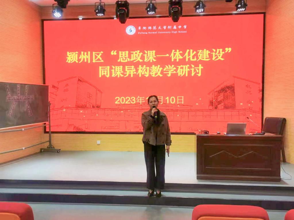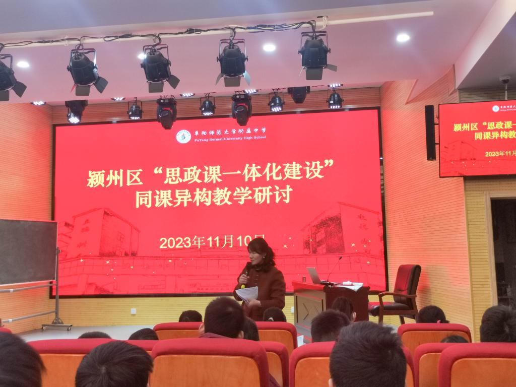 为推动颍州区大中小学思政课一体化建设,11月10日上午,颍州区“思政课一体化建设”同课异构教研活动在我校举办。活动在颍州区政治教研员马亚红主持下,分教师授课、专家评课、专题讲座三个环节进行。