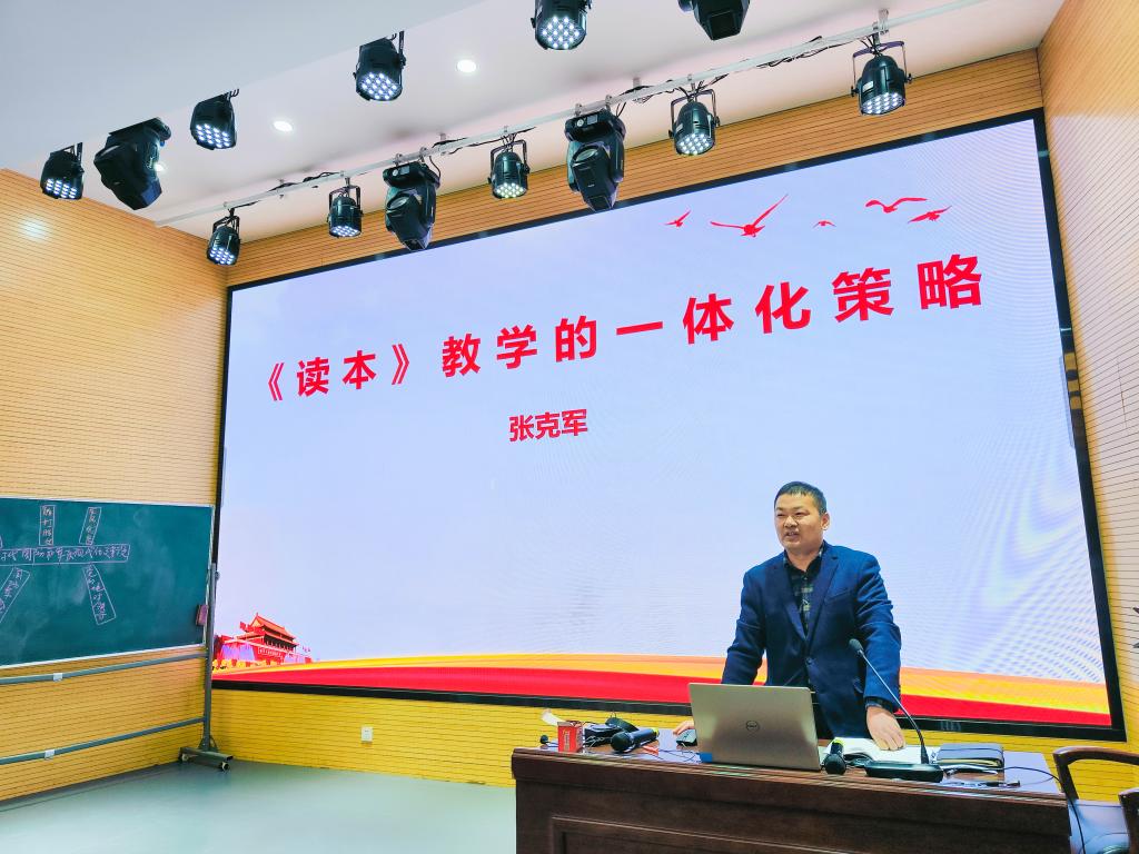 同心画圆,深度融合。在讲座环节,颍州区委教育工委党组成员张克军进行了《(读本)教学一体化策略》的专题讲座。张克军指出,新时代大中小学思政教育方法一体化建构,要以新时代作为基本点和立足点。要不断深化大中小学思政课一体化建设研究,发挥大中小学思政课教师教研共同体作用。他强调各学段思政课教师应聚焦如何打通大中小学师资的阶段性阻隔,探索共建、共享、共研模式,有效促进思政课教师“术”“学”“道”三者的有机融合。在新时代背景下,思政课教师需转变理念,帮助学生在思政课“学、思、悟、行”上见成效。
