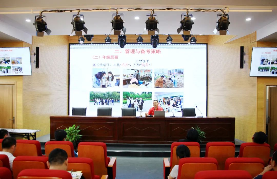 阜阳一中年级主任邢芝明以《真诚交流》为主题,真诚地向全体老师介绍了阜阳一中成功的教学和管理经验。在经验分享中他指出:年级的发展和成绩的取得支持是保障,团结是根本,是无穷力量。工作中要依方向、抓课堂、早谋划、抓落实、重细节;要加强交流,加强教研,重视培优工作。报告幽默风趣,可操作性强。
