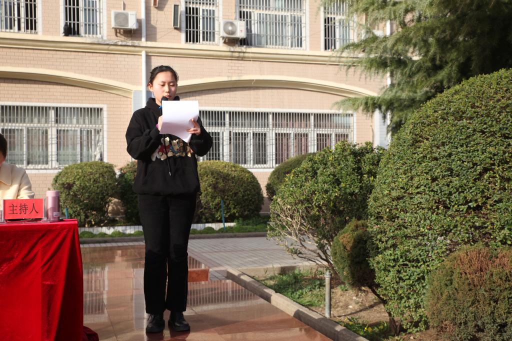 高二(1)班欧阳文心同学代表综合测评优异者发言。她为全体同学鼓舞士气,鼓励大家做敢于创新、善于创新的合格中学生。