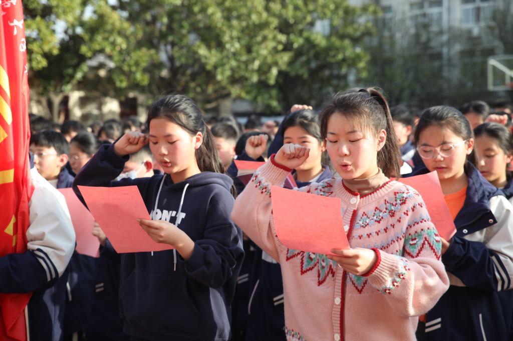 声声誓言表决心。全体同学集体宣誓:做爱心少年、优雅少年、诚信少年、有为少年!做优秀的附中学子!
