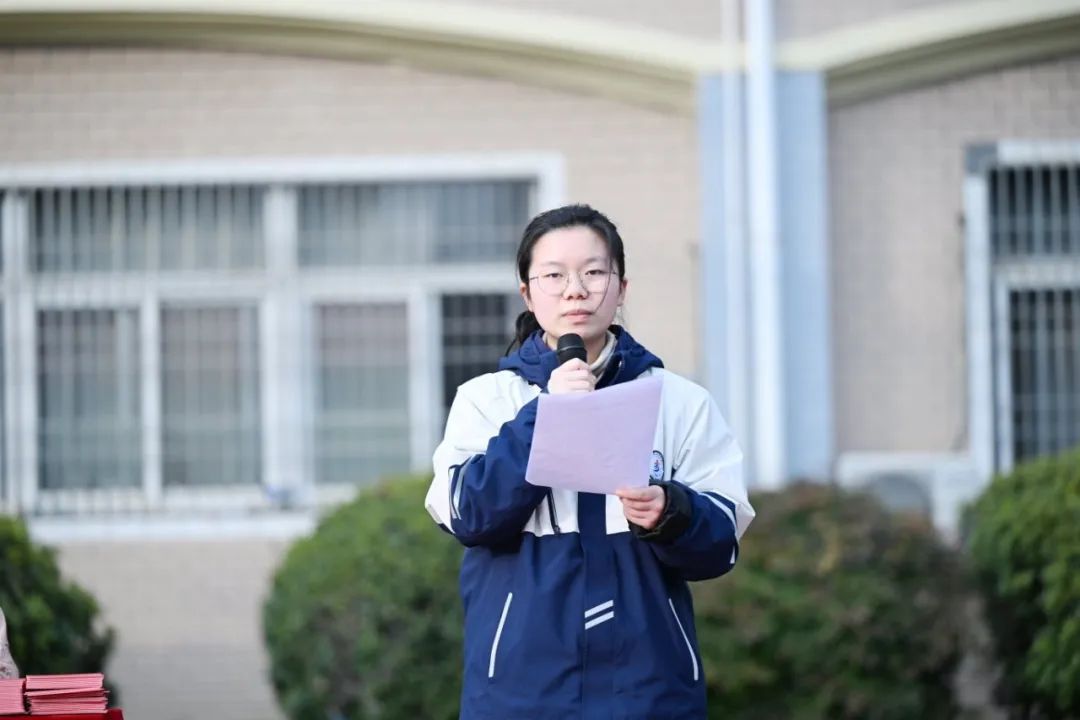高二(2)班李一铭同学代表综合测评优异者发言。她为全体同学鼓士气,鼓励大家做敢于创新、善于创新的合格中学生。