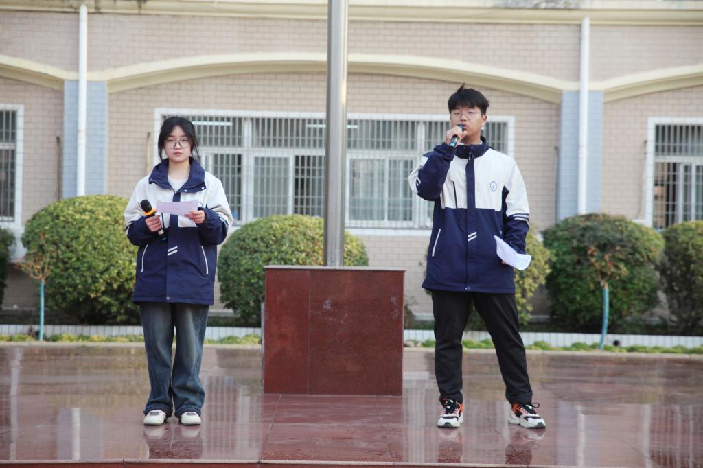 晨会在庄严的升旗仪式中拉开帷幕。高一6班李文志和张子琪担任本次晨会的主持人,他们热情洋溢的宣布升旗仪式开始。