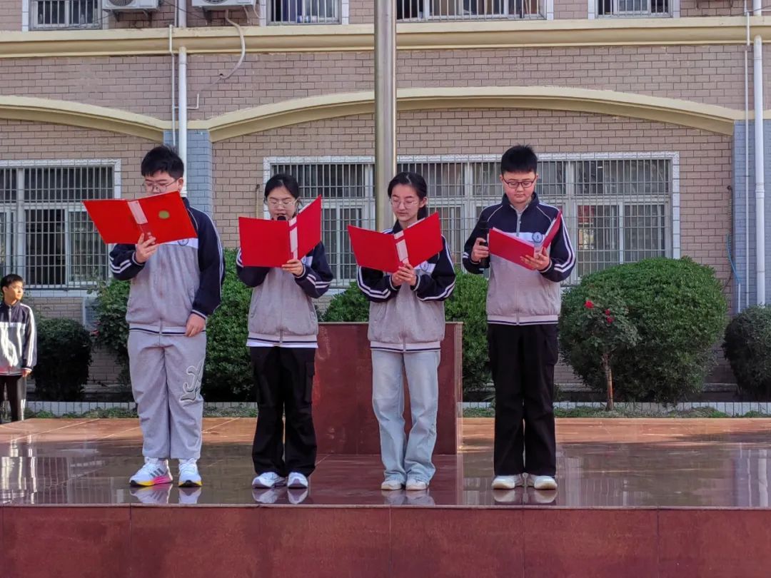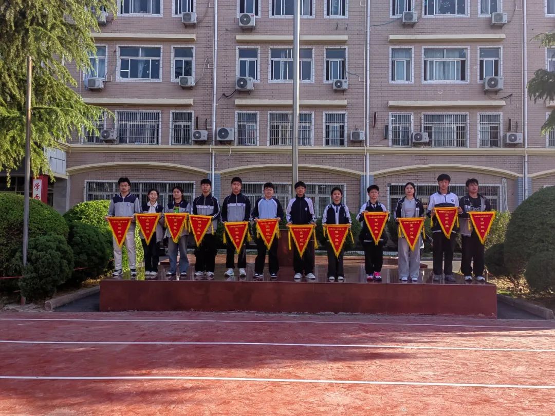 全体师生肃立操场,迎着朝阳,以庄严的升旗仪式开启新一周的征程。升旗仪式后,学生会成员公布了上周卫生检查结果,并为优秀班级颁发流动红旗。随后八年级四班王禹森同学的演讲《以青春之名,护国安之基》将晨会推向高潮。