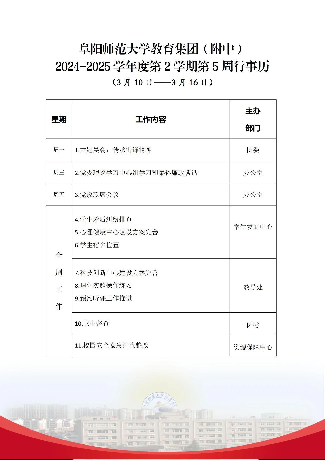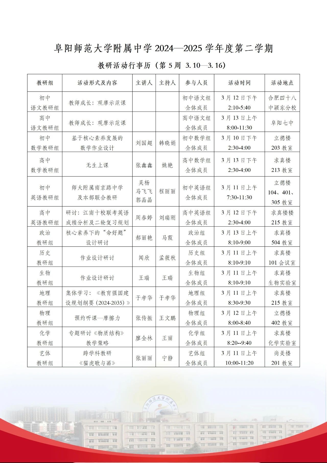 上一条:阜阳师范大学教育集团(附中)2024-2025学年度第二学期第6周行事历