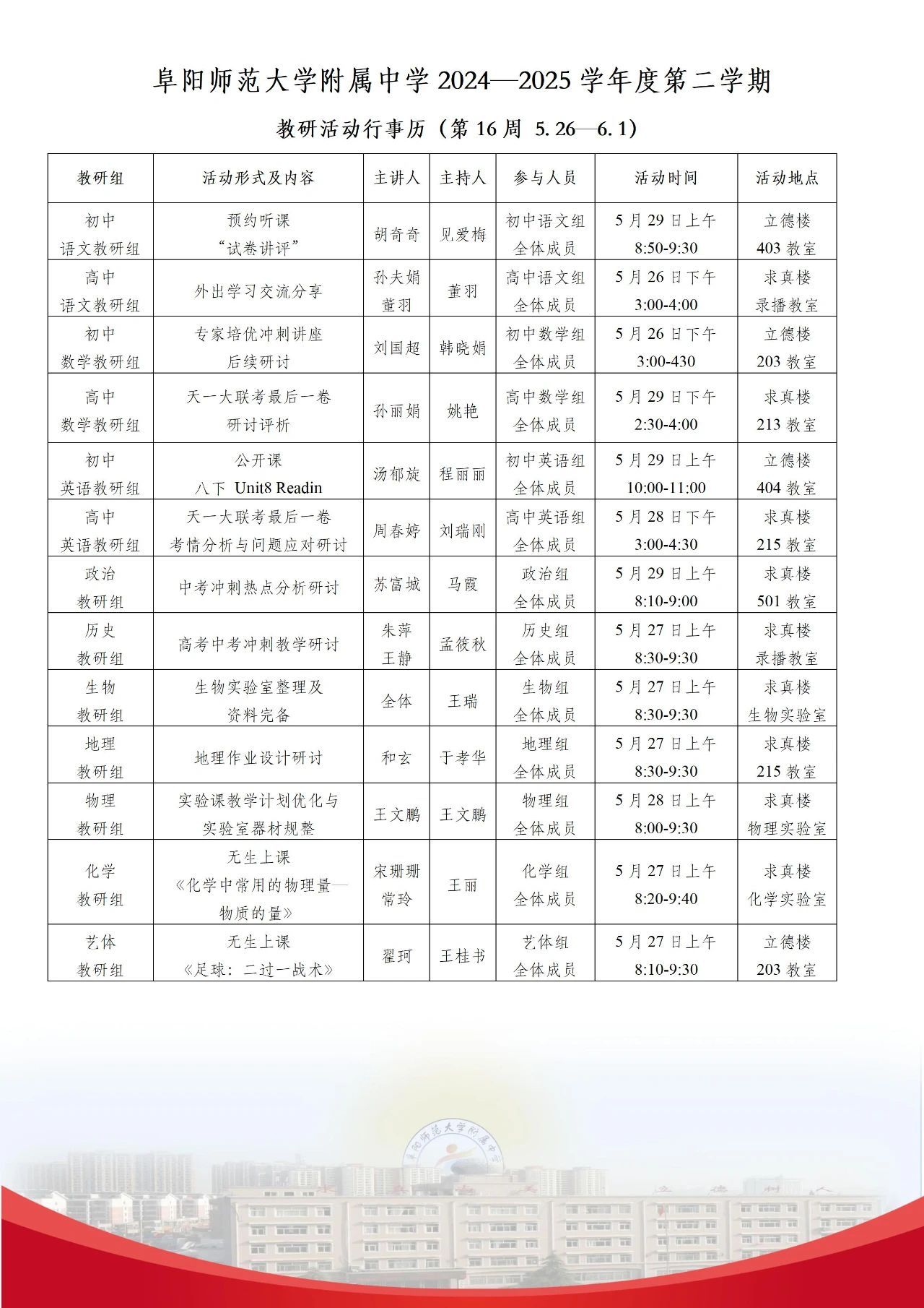 上一条:阜阳师范大学教育集团(附中)2024-2025学年度第二学期第17周行事历