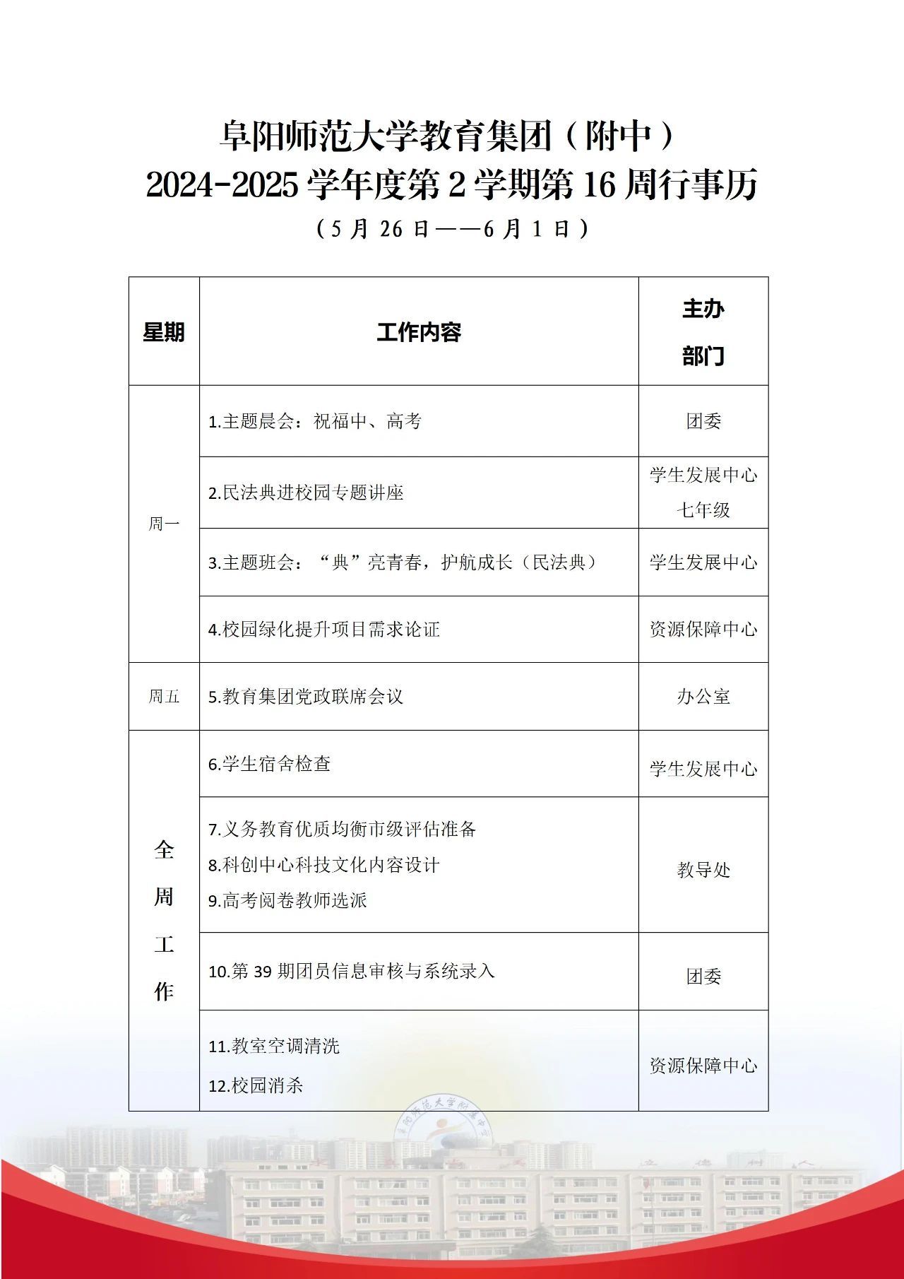 下一条:阜阳师范大学教育集团(附中)2024-2025学年度第二学期第15周行事历