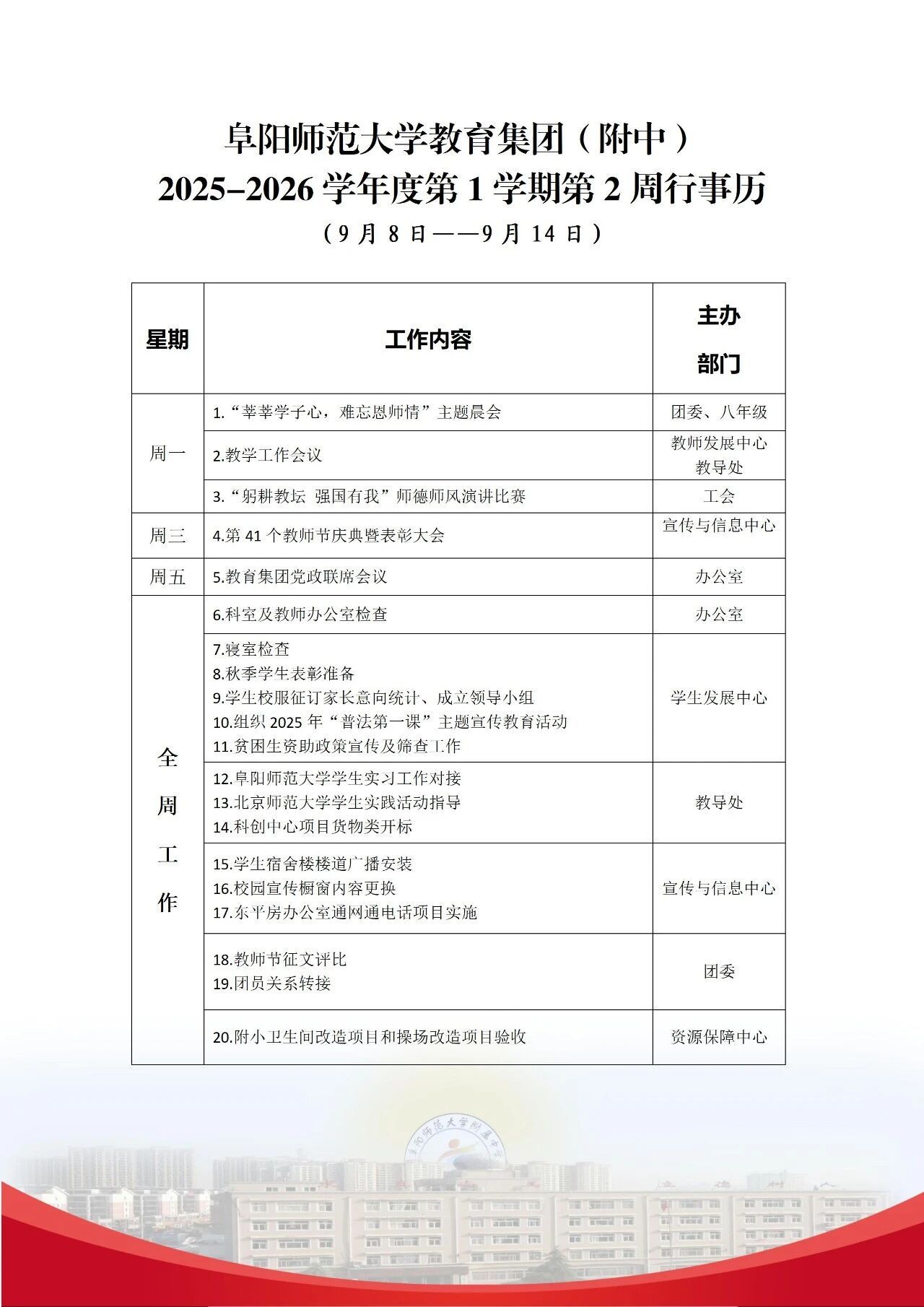下一条:阜阳师范大学教育集团(附中)2025-2026学年度第1学期第1周行事历