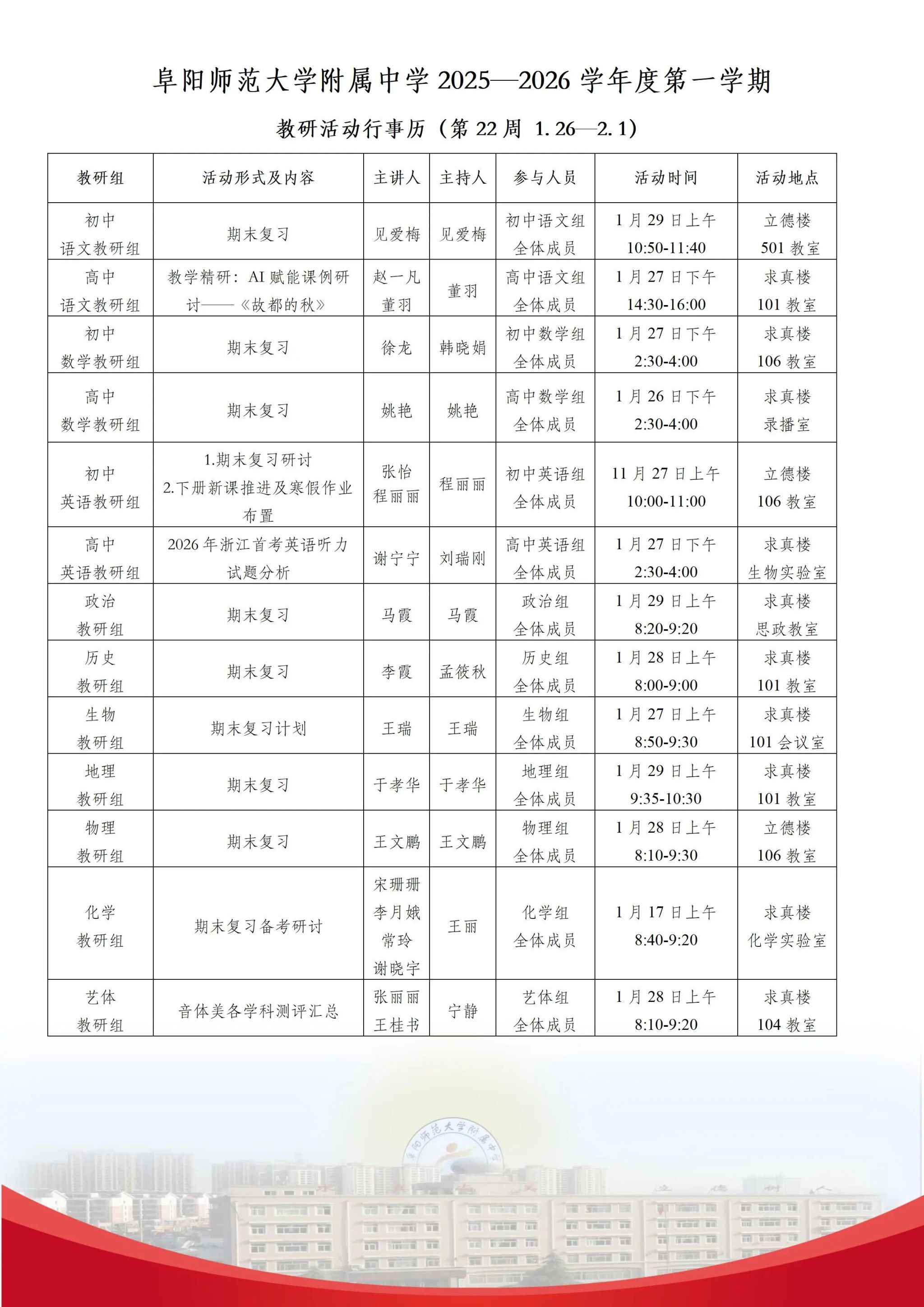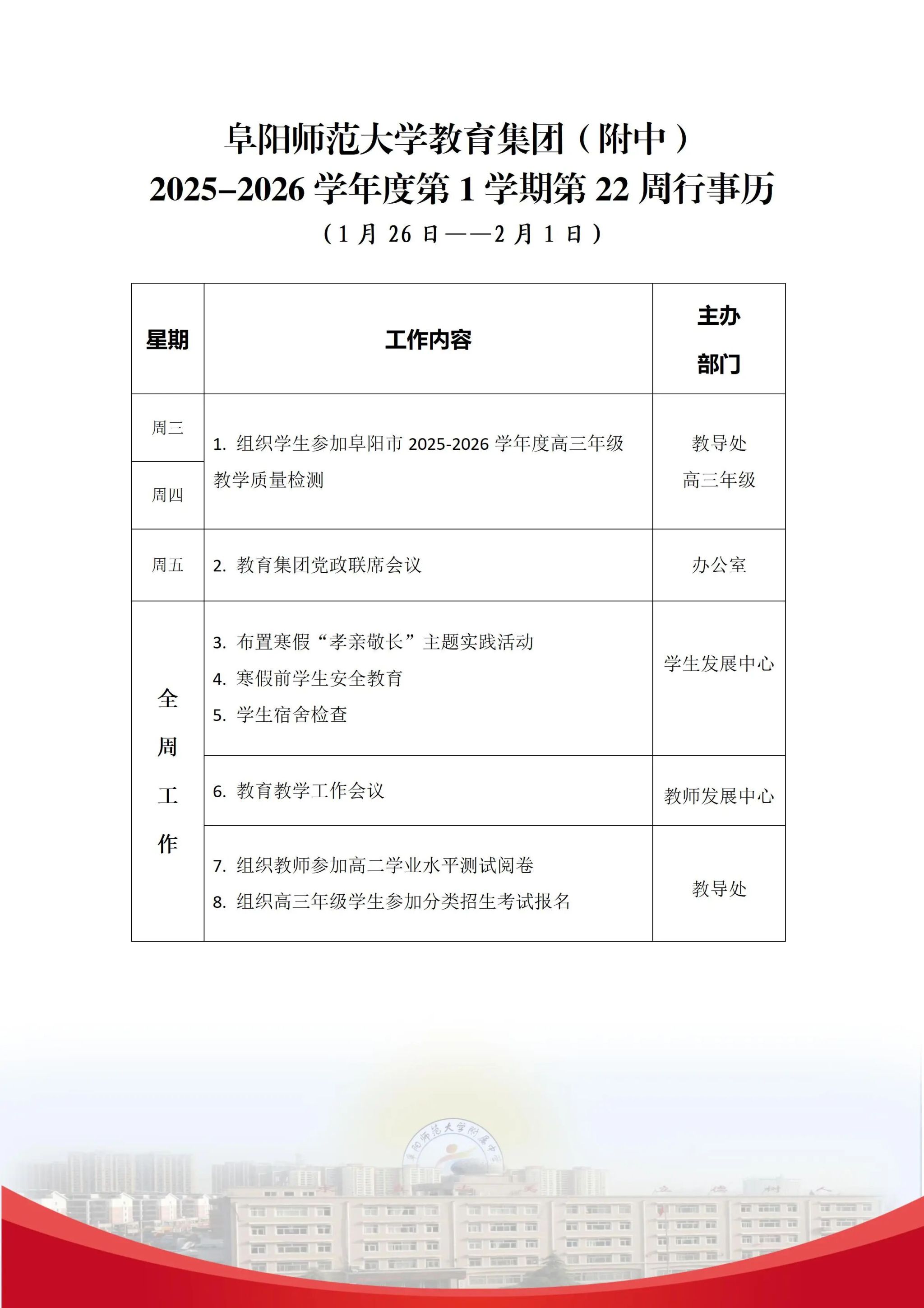 上一条:阜阳师范大学教育集团(附中)2025-2026学年度第1学期第23 周行事历