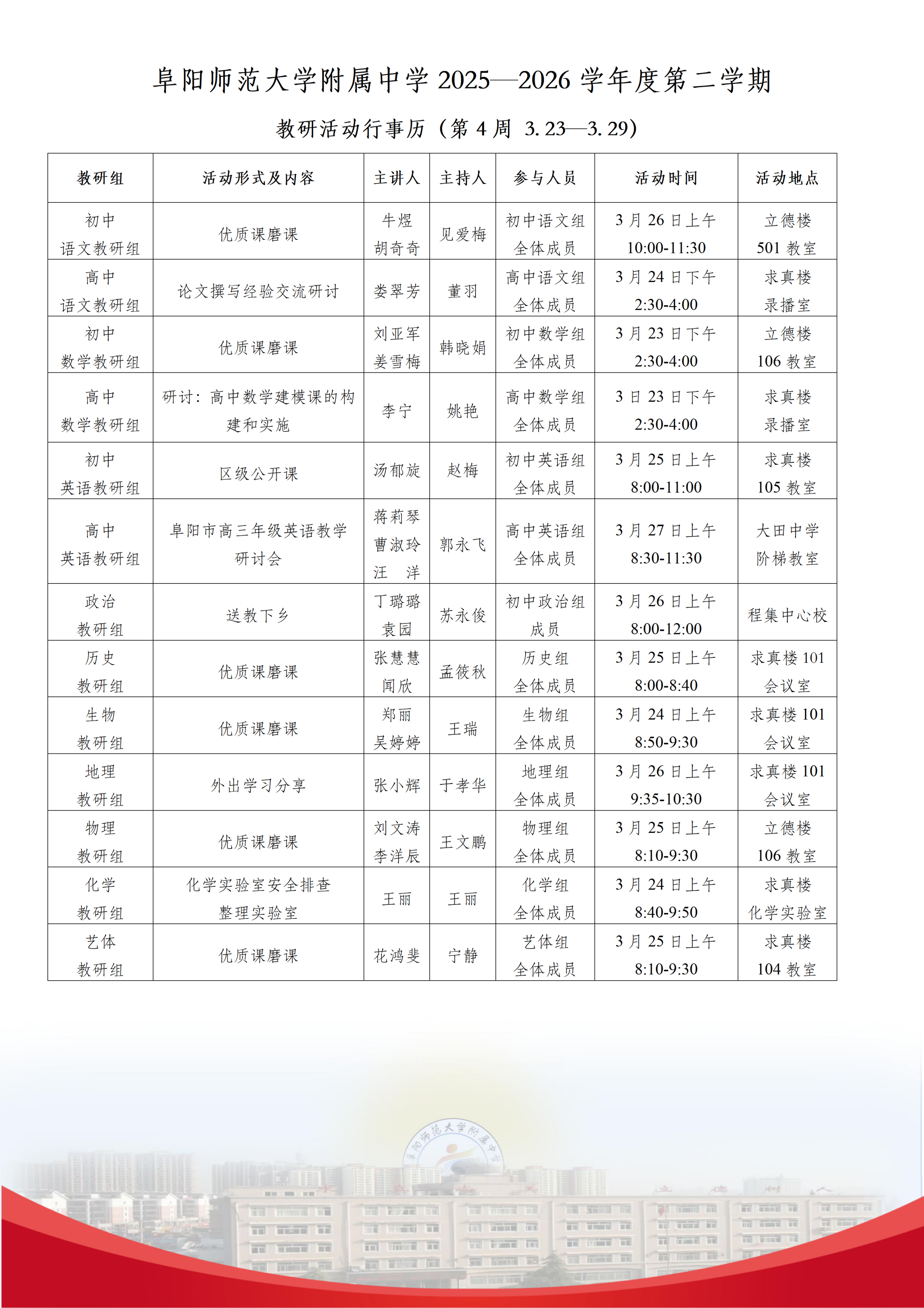 上一条:阜阳师范大学教育集团(附中)2025-2026学年度第2学期第5周行事历