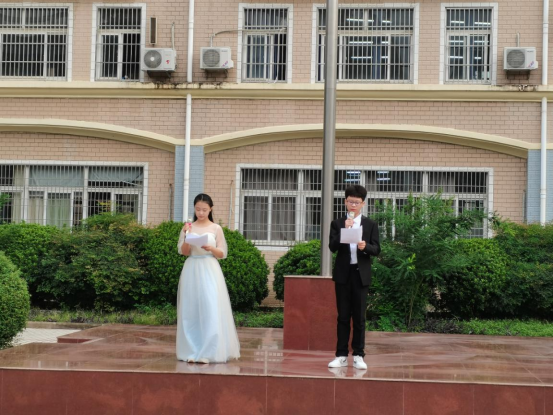 晨会由八(7)班李婧琪、八(8)班关锦泽同学主持,在庄严的升国旗仪式中拉开帷幕。