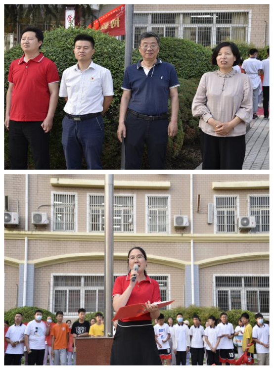 本次出征仪式由九年级年级主任李霞老师主持,参加仪式的有:高家芳校长、王健书记、吕新华副校长、方帅军副校长、徐升副书记以及初中部全体师生。