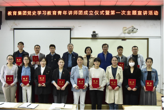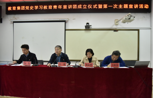 5月17日下午,教育集团在求真楼阶梯教室召开党史教育青年讲师团成立仪式暨第一次主题宣讲活动,教育集团领导班子、党总支委员、支部书记和党史教育青年讲师团成员参会。教育集团党总支副书记徐升主持会议。
