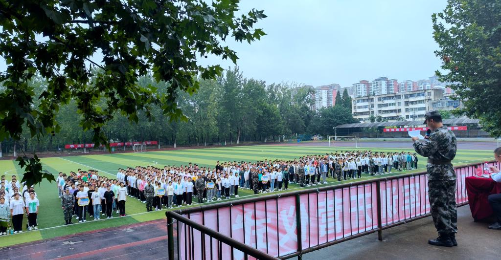 8月28日上午,阜阳师范大学附属中学暨第二附中2023级新生军训开营仪式在师范大学清河校区操场隆重举行。颍州区人武部军训办主任罗颍军、军事科参谋罗壮、大队长唐国强,阜阳师范大学教育集团党总支副书记徐升,教育集团副总经理、附中副校长吕新华出席。仪式由附中政教处主任年明点主持。