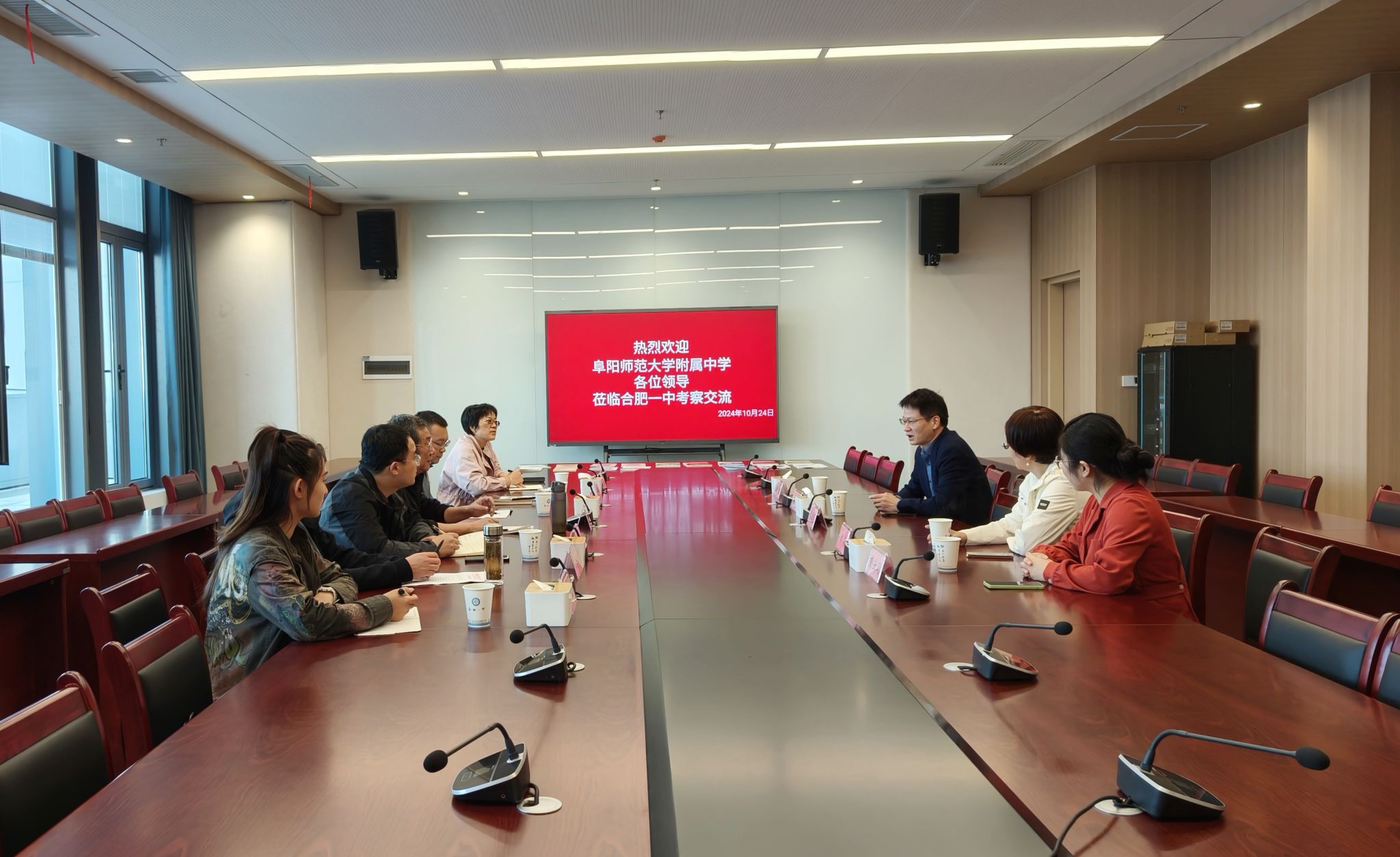 合肥一中办公室副主任孙华,上海市松江一中党委书记、校长潘建荣,上海外国语大学松江外国语学校校长左洋洋分别接待考察组一行。