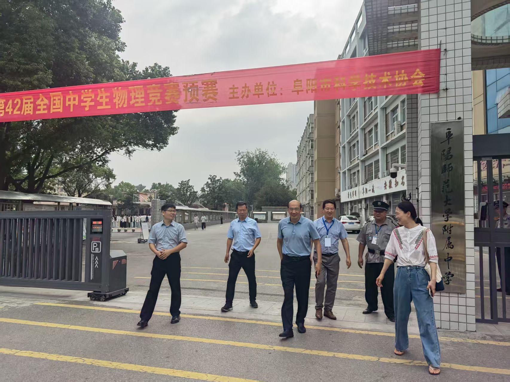 比赛期间,阜阳市科协二级调研员盛琴和副主席赵雷、阜阳市教科所所长吴奇、阜阳市物理教研员杨培军,阜阳师范大学附属中学校长方帅军等领导亲临现场指导,详细了解赛事组织情况。