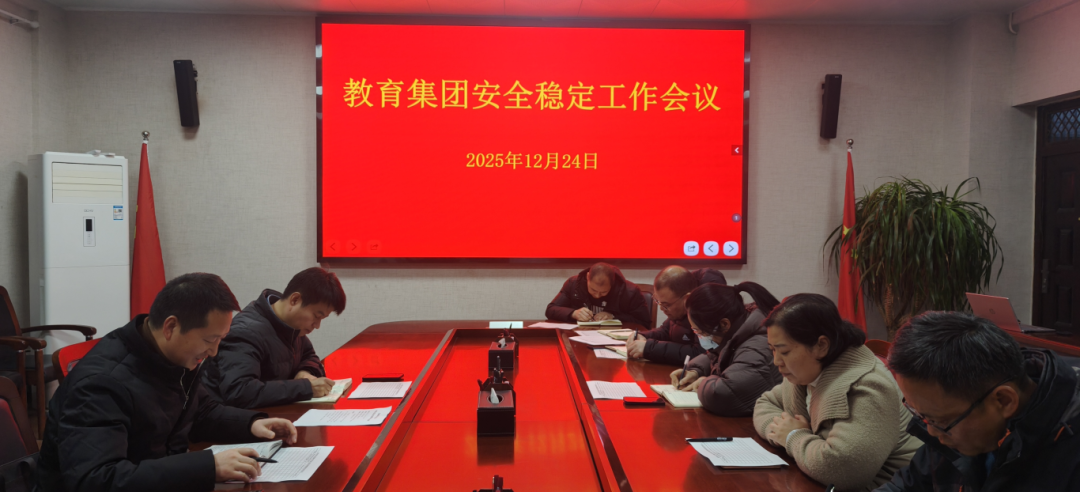 为全面压实校园安全管理责任,织密织牢校园安全防护网,构建和谐稳定校园,12月24日,教育集团在求真楼101会议室召开安全稳定工作会议。教育集团党委书记徐升主持会议,教育集团总经理方帅军,学生发展中心、资源保障中心负责人及相关同志和各年级主任参会。