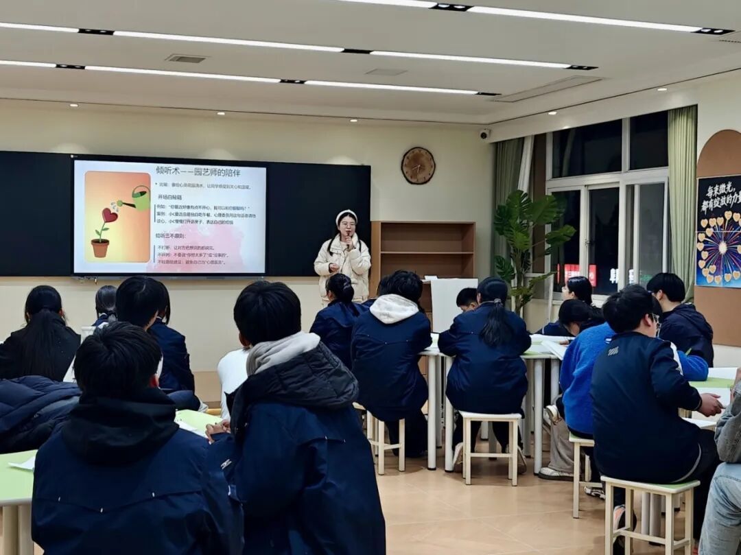 培训内容聚焦年级特点,实现能力分层提升。面向九年级和高三的第二期培训,重点强化心理委员在毕业阶段的倾听陪伴与团队支持能力。培训通过小组倾听练习、危机识别辨析和资源转介流程讲解,帮助心理委员在高压环境下既做好自我调节,也能有效识别并支持同学。
