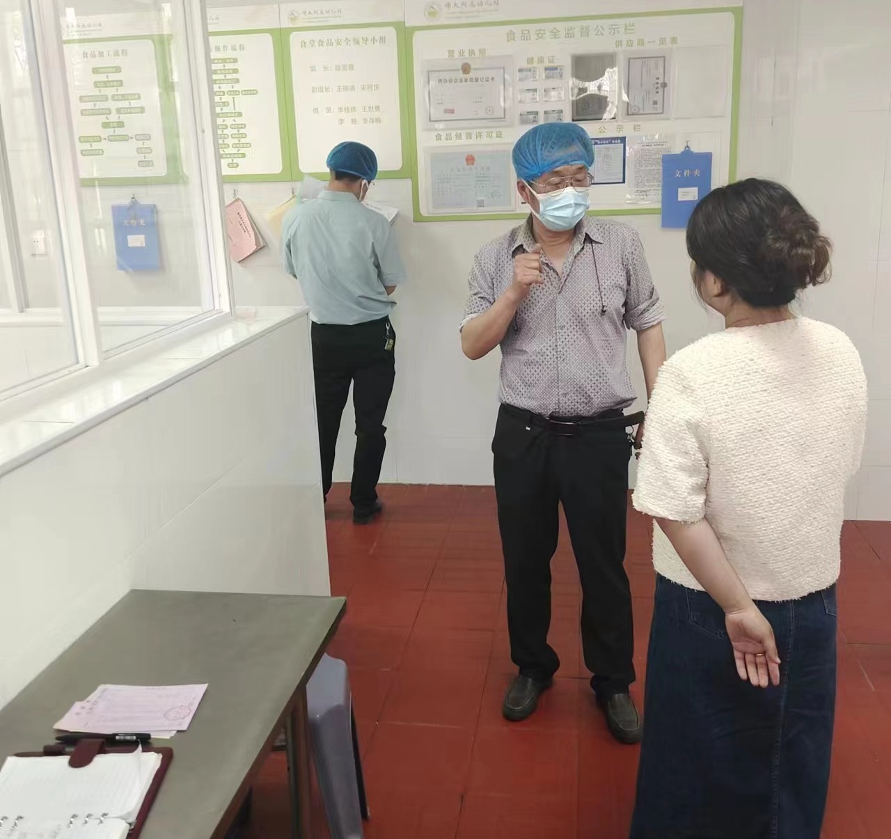 吕新华走进附属幼儿园,除了检查常规安全设施之外,尤其仔细查看了幼儿园的食堂卫生状况。他认真听取食堂负责人的工作汇报,深入查看食堂餐具消杀、食材质量等情况。