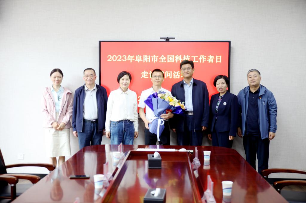 5月30日上午,在第七个“全国科技工作者日”到来之际,市政研室副主任张浩、市科协主席兰玉、副主席盛琴、市教育局副局长王伟一行到我校慰问科技创新中心负责人,安徽省“优秀指导教师”,阜阳市“最美科技工作者”王正。