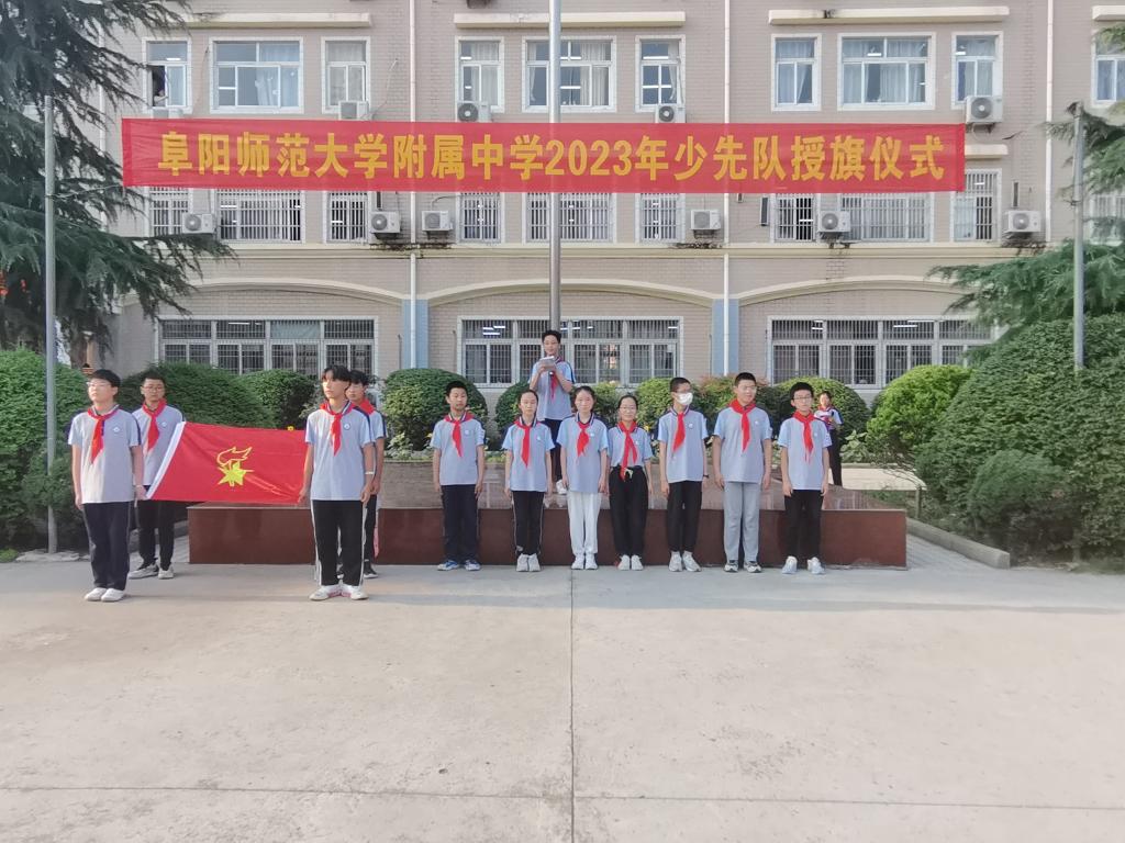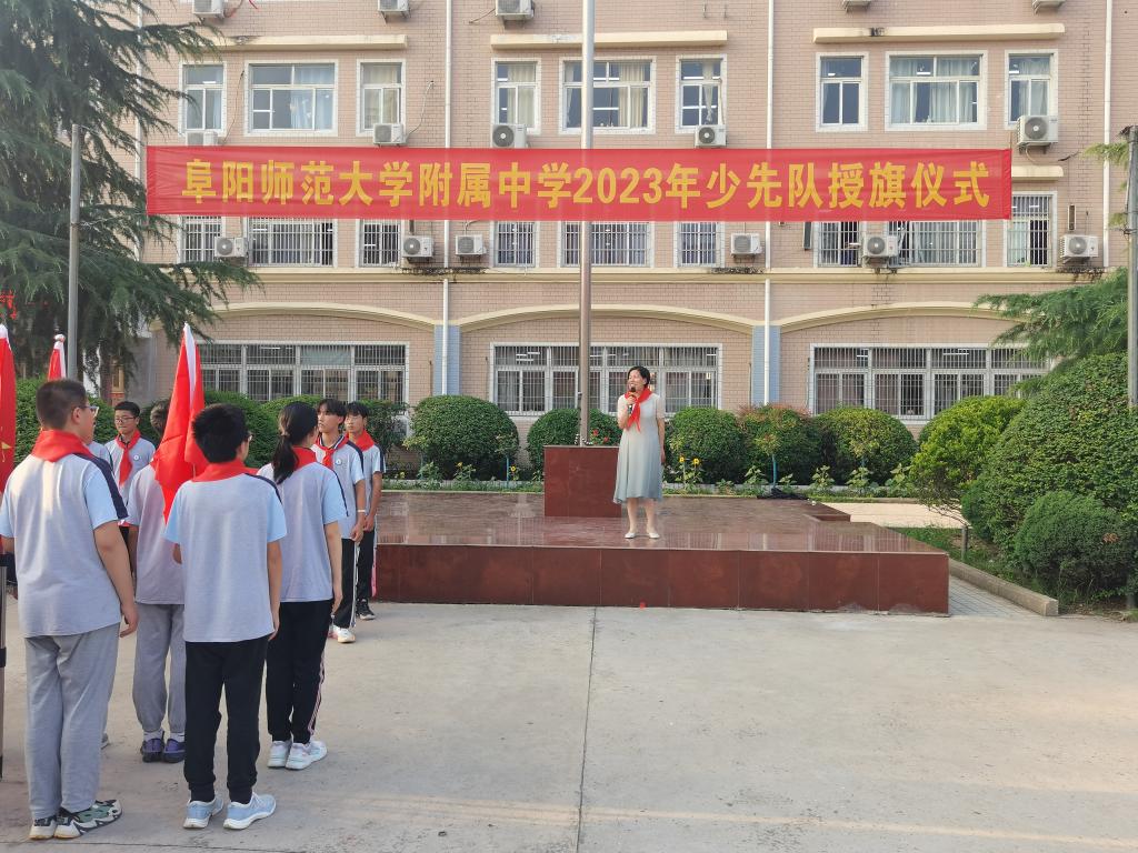 阜阳师范大学教育集团总经理、附中校长高家芳、教育集团副总经理、附中副校长吕新华、有关职能部门负责人、七年级全体师生参加了授旗仪式。仪式由七年级少先队员刘丰铭和周可欣主持。