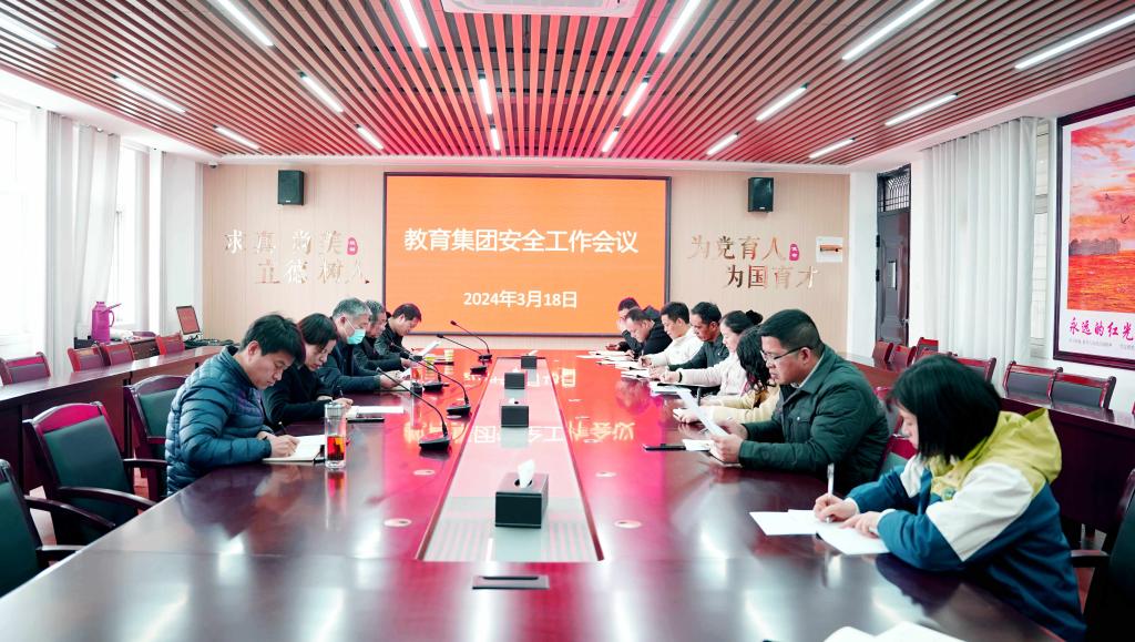 为强化校园安全管理 创建和谐平安校园,3月18日,教育集团在求真楼503会议室召开教育集团安全工作会议,深刻剖析教育集团当前校园安全面临的严峻形势和困难,全面部署近期校园安全各项重点工作。会议由教育集团党委书记王健主持,教育集团学校安全工作领导小组全体成员参加会议。