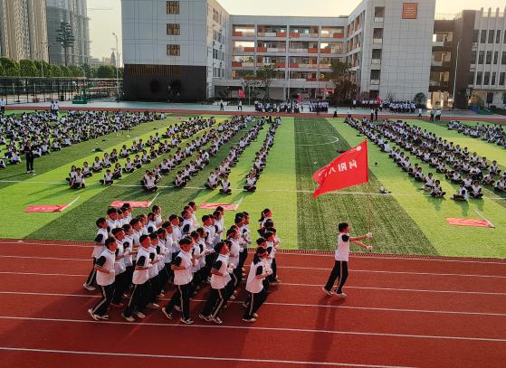全校24个班级在操场上迅速集结,他们统一着装,整齐划一,气势昂扬,像等待检阅的战士。吴培新老师代表裁判组宣誓,岳璐怡同学代表参赛选手发言。