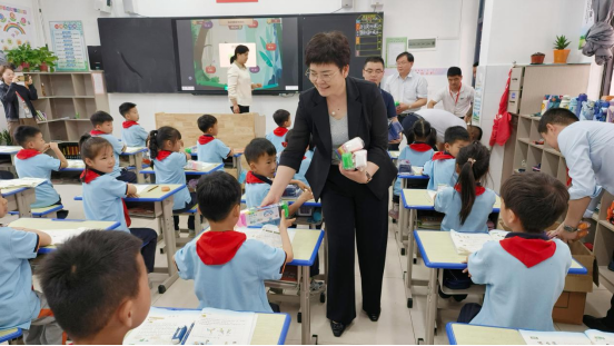 活动中,岳岿一行向我校学生捐赠学习用品和体育用品,向孩子们送去节日祝福和深切关怀,并向一线老师致以最诚挚的问候,充分体现了上级领导关心教育、情系儿童的真挚情怀。