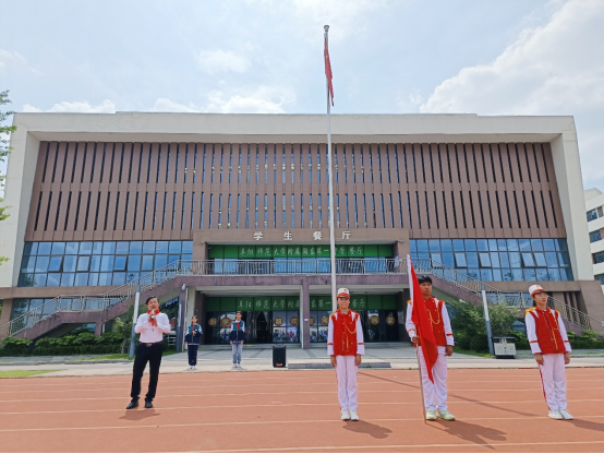 伴随着庄严神圣的出旗曲,三位队旗手,手执少先队旗,迈着坚定的步伐,精神抖擞地走入会场。队旗飘扬,队歌嘹亮,入队仪式正式拉开帷幕,星星火炬代代相传,铿锵队歌响彻校园。