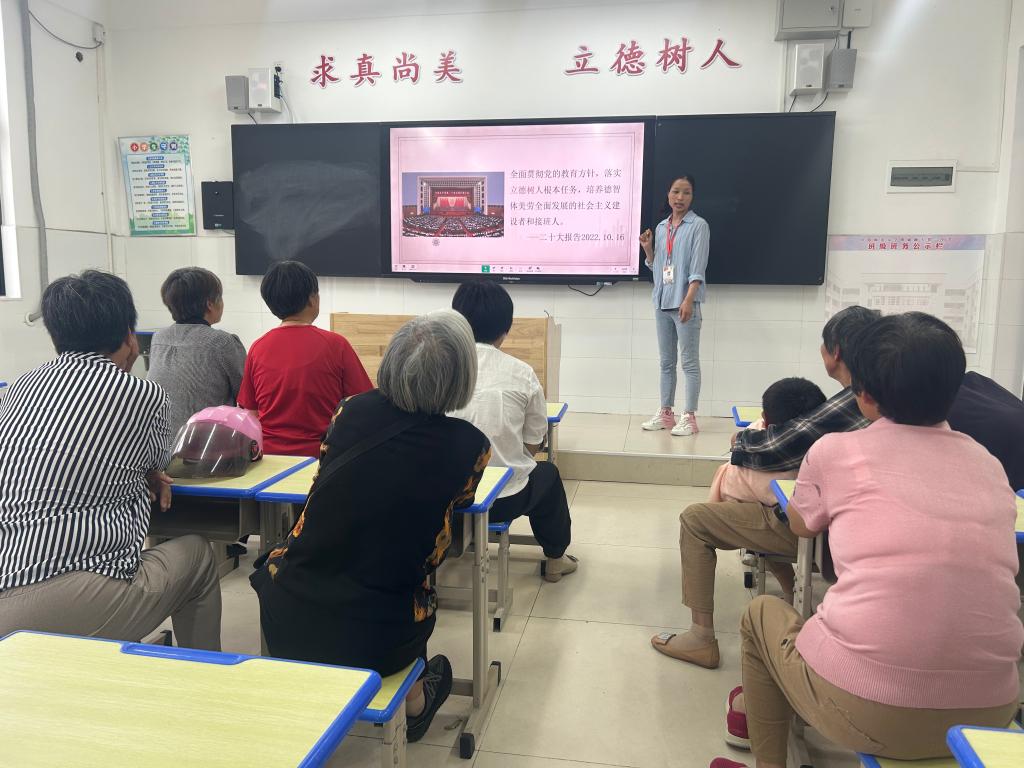 为深入学习贯彻党的二十大精神,更好地落实“老有所学”暖民心工作要求,持续发挥我校“老有所学”教学点的作用,6月2日下午,我校开展了“办好思政课,树好未来人”的专题讲座,由道德与法治老师侯娟主讲,20多名老年朋友聆听了讲座。