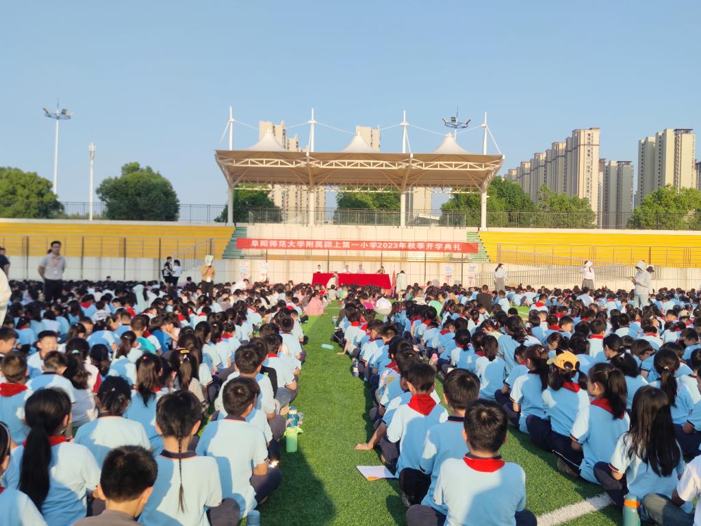 新学期开启新希望,2023年9月14日,阜阳师范大学附属颍上第一小学隆重举行2023-2024学年“红心向党、幸福成长”秋季开学典礼暨表彰大会,全体师生参加了本次活动。