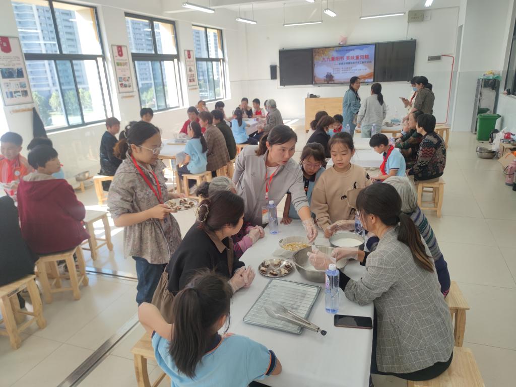 学校邀部分家长和孩子们到食育坊,副校长于素梅和大家一起动手制作重阳糕点。称量、筛粉、铺馅、蒸烤……甜甜的糕,浓浓的情,一块小小的重阳糕承载了孩子们敬老爱老之情。