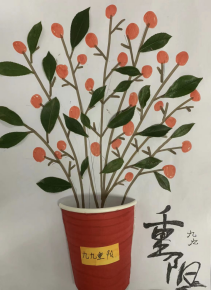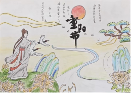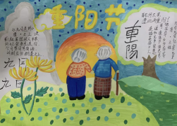 秋日的重阳不仅有爱,更美在诗人的笔下,更诠释在学生的妙笔生花中,图文并茂的诗画相融,“每逢佳节倍思亲”的重阳登高,“遍插茱萸少一人”的重阳茱萸,“满园菊花郁金香”的重阳采菊,“他乡共酌金花酒”的重阳饮酒……重阳的美好习俗在诗句中绽放,在书画艺术中玲珑剔透。