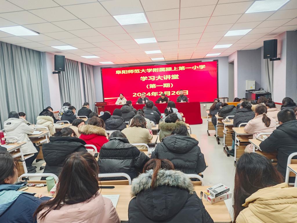 最是书香能致远,腹有诗书气自华。为了营造良好的读书氛围,增强教师文化底蕴,引领教师在读书中不断提高自身的素质,努力打造终身学习型教师,2024年2月26日下午,附属颍上第一小学全体教师在合班教室举办了“学习大讲堂”第一期——教师读书分享交流会。