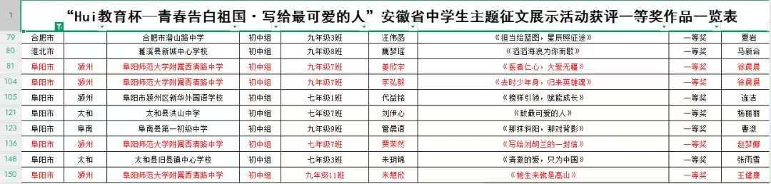 在团安徽省委、安徽日报社、安徽省学联联合开展的“Hui教育杯—青春告白祖国·写给最可爱的人”安徽省中学生主题征文展示活动中,我校师生以饱满的爱国热情、真挚的情感表达和扎实的写作功底,在全省众多参赛选手中脱颖而出,斩获佳绩!