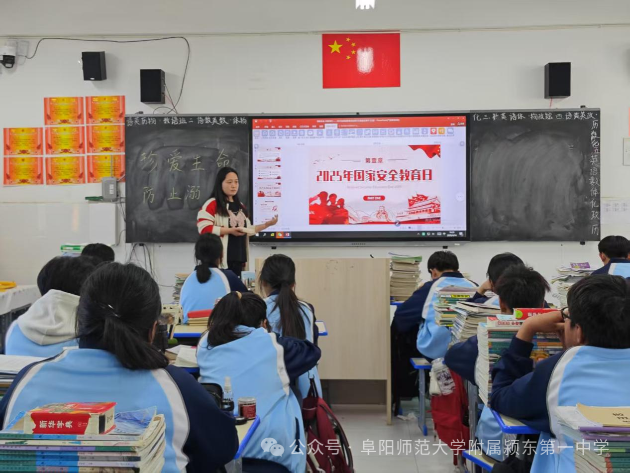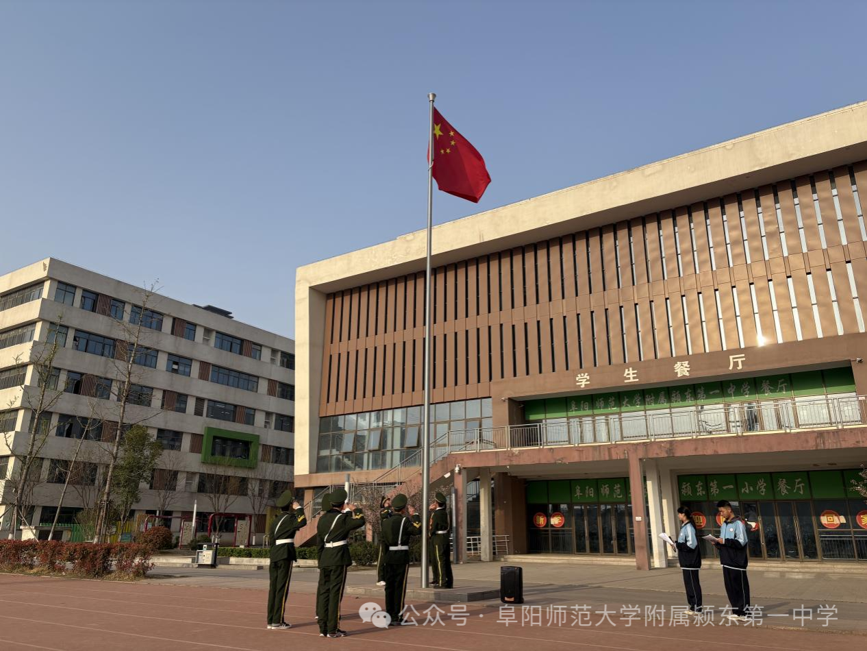 4月14日,阜阳师范大学附属颍东第一中学举行“国家安全在心中 青春奋进新时代”主题升旗仪式,旨在贯彻习近平新时代中国特色社会主义思想,增强师生国家安全意识,弘扬爱国主义精神 。国旗护卫队迈着整齐有力的步伐护送国旗走向升旗台,展现新时代青年的朝气与担当。