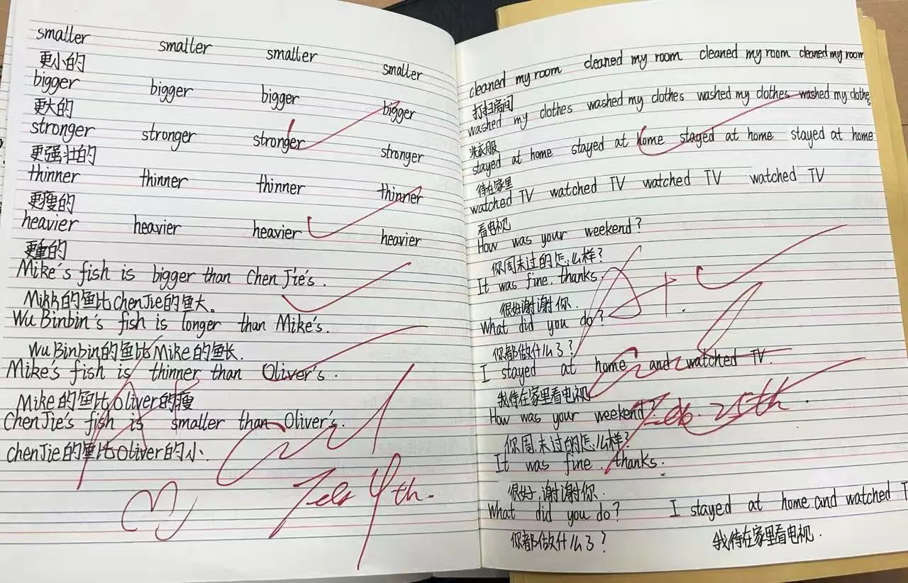 作业作为联接课堂理论与实践的关键桥梁,承担着巩固知识、培养技能的重任。老师的批改不仅是对孩子们学业成果的认可,更是个性化指导与情感关怀的展现。细致审查,老师们能够严格落实“双减”要求,科学合理、有针对性地布置作业,作业量适中,形式多样。同时,老师们批改作业既高效又具针对性,纠错有痕,评语中肯。