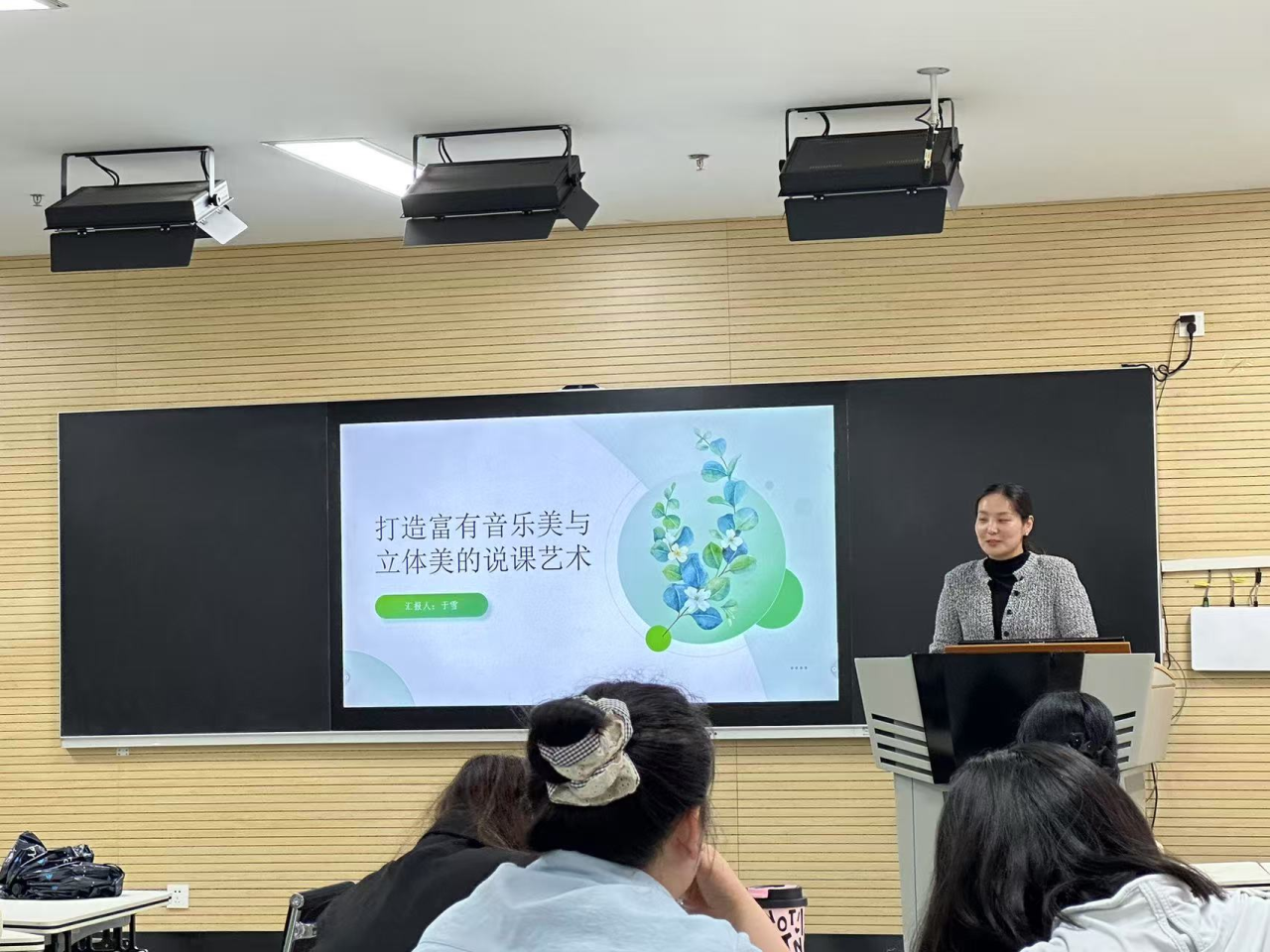 颍东区冉庙乡兰堂小学于雪老师则以《打造富有音乐美与立体美的说课艺术》为题,开启一场充满美学韵味的专业探讨。她立足音乐教师 “唱、弹、讲、演” 四大核心技能,深入剖析如何将声乐演唱的感染力、器乐弹奏的表现力、语言讲述的穿透力、舞台表演的张力融入说课过程。于雪表示,一堂优质说课应是审美感知的具象化呈现,需通过精准的语言节奏、灵动的肢体表达、巧妙的音乐元素穿插,构建起兼具听觉享受与视觉冲击的立体化说课场景,为在场教师解锁了说课艺术的全新维度。