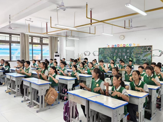 比赛在欢快的音乐声中拉开帷幕。各班级依次登台,同学们身穿校服,面带自信的笑容,将音乐与手势巧妙融合。《防溺水安全》《大中国》等正能量歌曲通过整齐划一的手势、富有张力的表现,诠释着蓬勃的青春。六(2)班加入防溺水知识宣传,提高了孩子们的安全意识;六(1)班融入爱国元素,展现文化传承的创新表达。